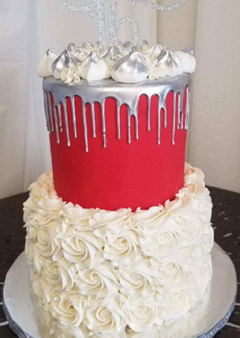 Cakes are 6 inches and 8 inches - Serves up to 30